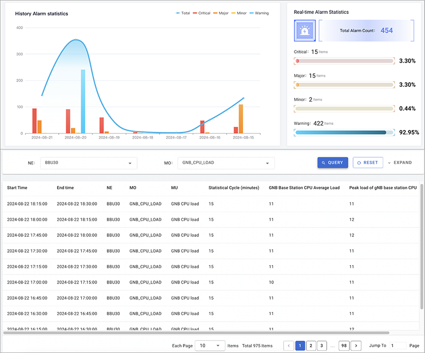 全ネットワークエレメントキーKPI、データ統計、グラフィック展示